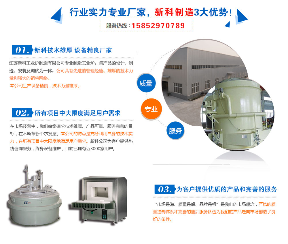江蘇新科工業爐制造有限公司(原姜堰市新科電爐制造有限公司)自1999年創建以來,以技術、品質和服務為宗旨,積極開拓,勇于進取,躋身于中國工業爐行業的前列。公司占地面積15000㎡,堅持以人為本的發展戰略,現有員工76人,其中管理人員10人,工程技術人員8人,質量管理人員3人,生產技術工人55人。多年來,公司一方面在全國范圍內引進經驗豐富的各類人才,另一方面對在職員工進行技術培養,鼓勵員工進行各種形式的自學和進修,憑借“內抓培養,外引人才”的理念,公司擁有一支集營銷、設計、生產、安裝和服務為一體的優秀員工隊伍。業務范圍:工業爐產品的設計、制造、安裝及調試;大型天燃氣加熱爐、高溫電阻加熱爐、自動熱處理生產線、大型退火爐、回火爐、滲碳爐、波紋管、耐火材料;電站專用設備及配件、金屬波紋管補償器,金屬波紋管膨脹節,不銹鋼金屬軟管,合金耐熱管,輻射管、料盤鑄鋼件及電阻絲等32個系列產品。公司擁有一套切實可行的質量管理制度。自貫標以來,我公司嚴格按照ISO9001:2008標準建立質量